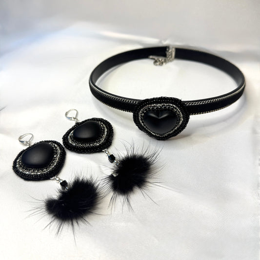 Two Toned Teal & Black Long Beaded Dangle Earrings