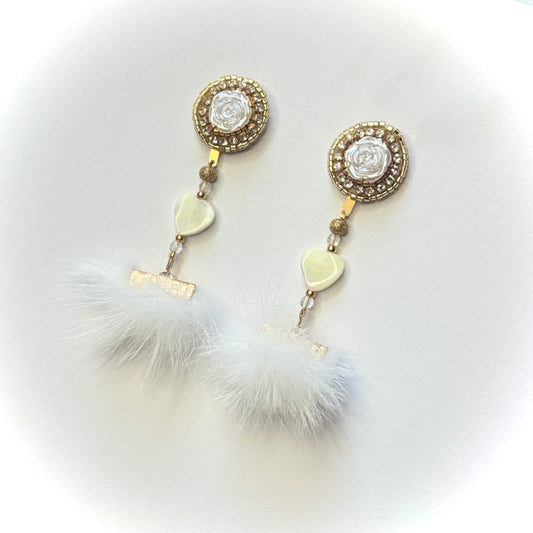 Mink Pom Pom Swarovski Crystal & Pearl Gold Plated Earrings
