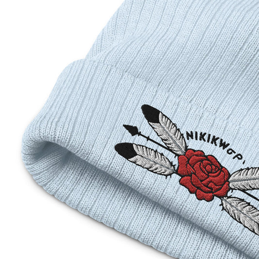 Native Rose Feather Ribbed knit beanie