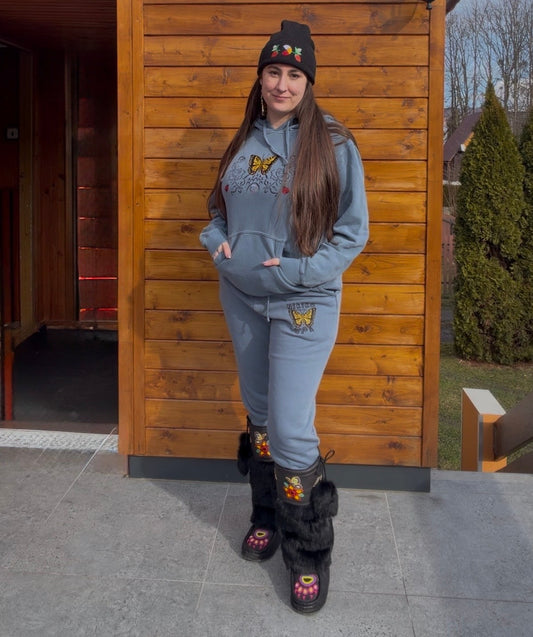 Embroidered Swallowtail Butterfly 100% Cotton pigment-dyed hoodie