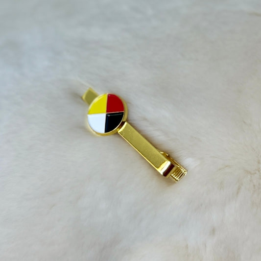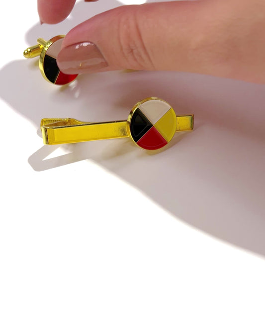 Medicine Wheel 18k Gold Plated Tie Bar Tie Clip Four Directions