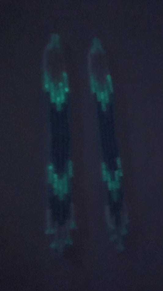 Black Legged Dart Frog Long Beaded Dangle Earrings