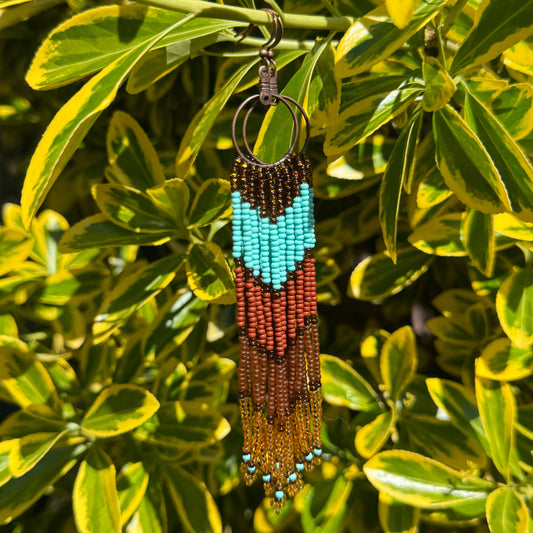 Beaded Hoop Fringe Earrings Copper Mint Tones