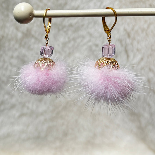 Mink Pom Pom Swarovski Gold Plated Earrings