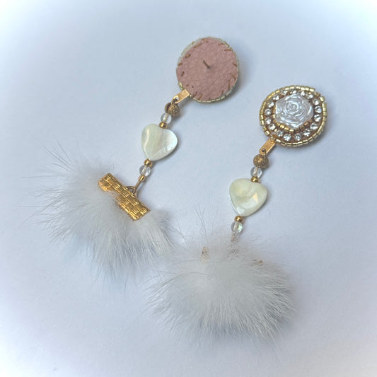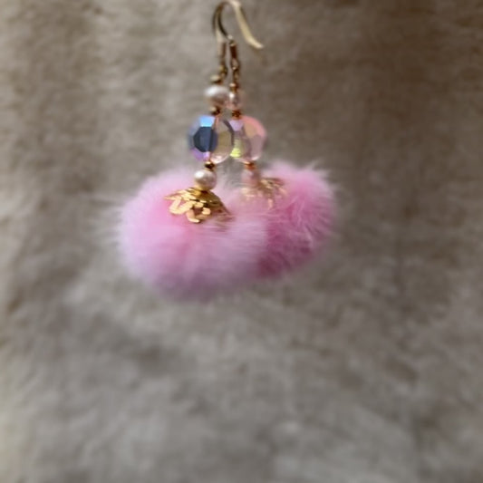 Mink Pom Pom Swarovski Crystal & Pearl Gold Plated Earrings