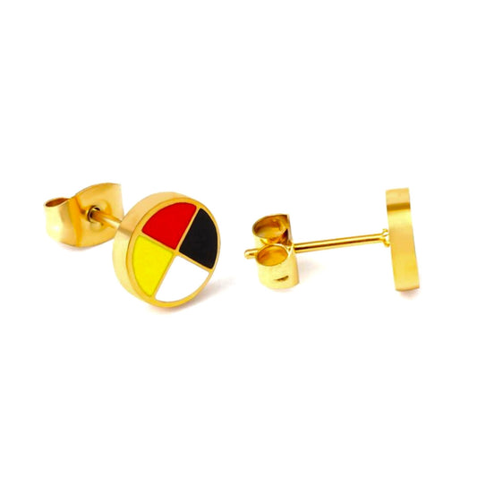 Medicine Wheel 18k Gold Plated Unisex Stud Earrings
