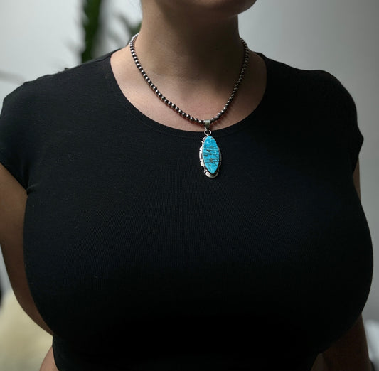 Sterling Silver Beads and Turquoise Inlay Pendant - Navajo Silversmith Steve Francisco
