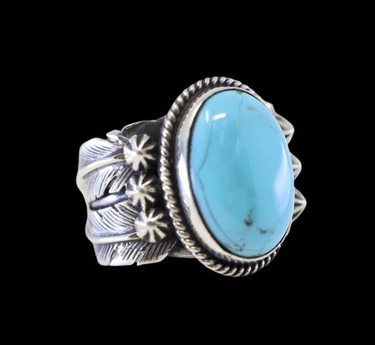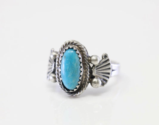 Navajo Signed Silver Turquoise Ring size: 7.25