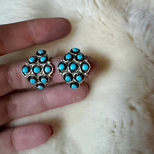 Navajo Sterling Silver Turquoise Blossom Post Earring's Signed