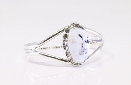 Navajo Sterling Silver White Buffalo Bracelet Cuff By Alfred Martinez