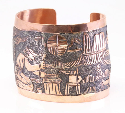 Navajo Story Teller Solid Copper Cuff bracelet 2” Stamped Elaine Becenti 1980’s