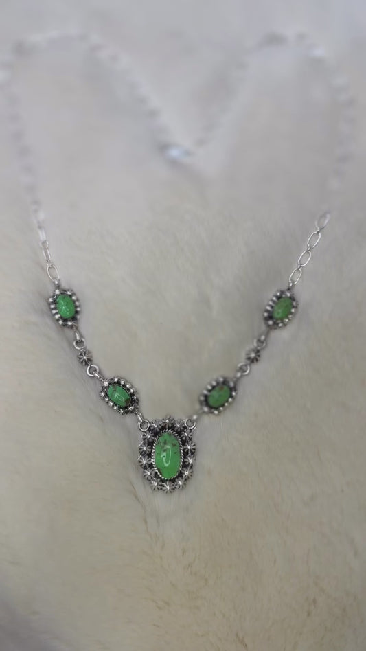 Antionette Martinez, Navajo Nation Sterling Silver Green Turquoise Necklace