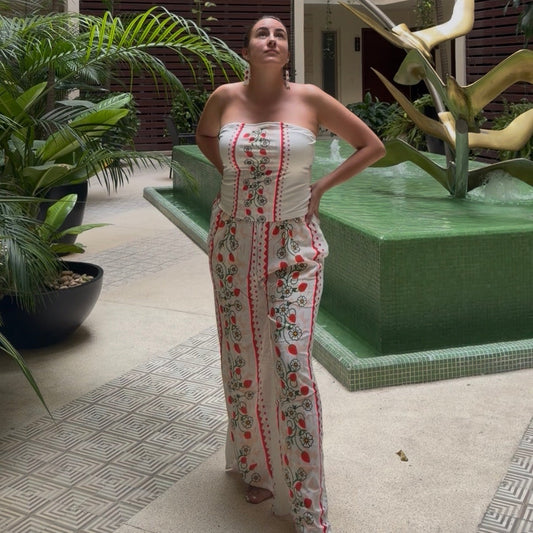 Strawberry Flowy Wide-Leg Pants 100% Rayon
