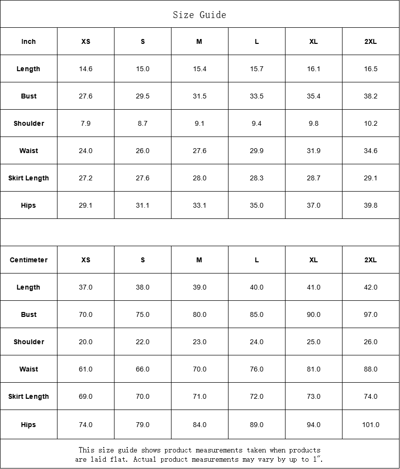 | Skirt Length | 27.2 | 27.6 | 28.0 | 28.3 | 28.7 | 29.1 |