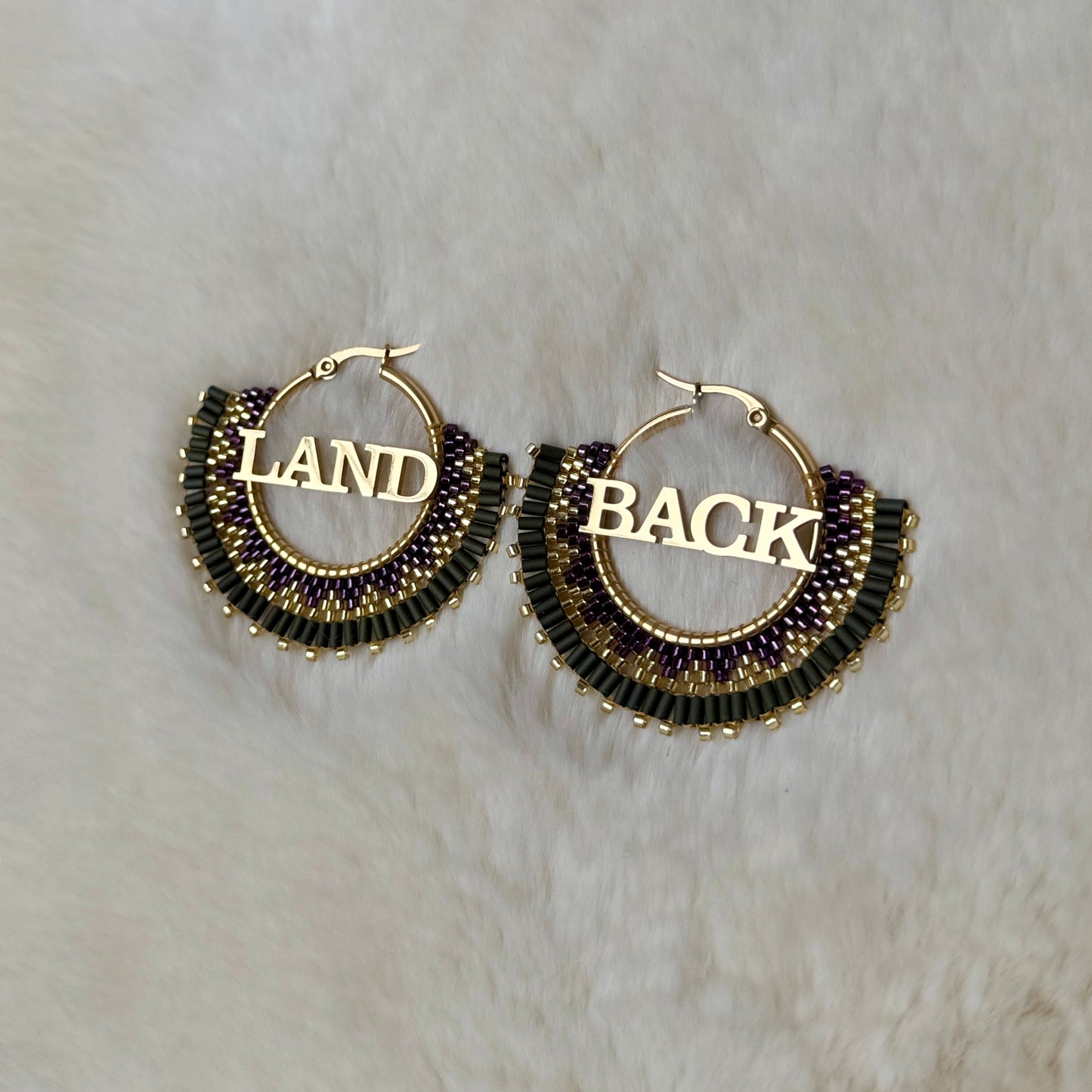 Land Back Gold Plated Delica Beaded Hoop Earrings Olive