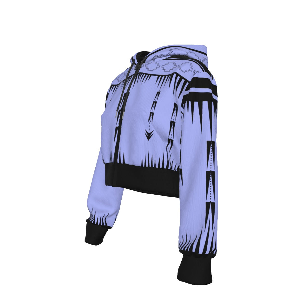 This cropped zip-up hoodie features a long-sleeved style and a zippered closure, perfect for pairing with matching joggers or casual shorts.