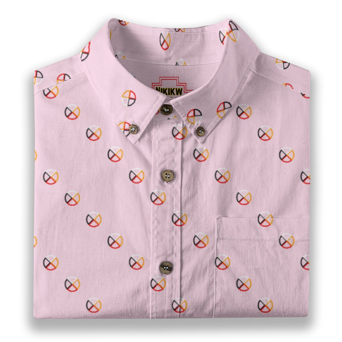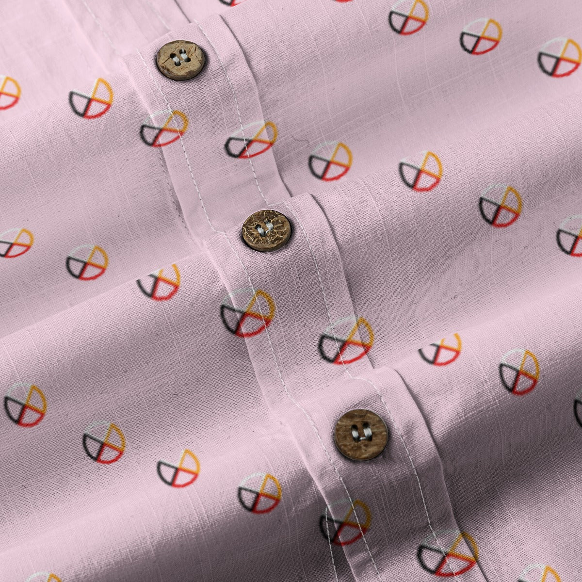 With a natural linen texture, this cotton shirt is effortlessly stylish. The curved hem and coconut buttons. Straight Cut. Size up one size in case of Cotton shrinkage.