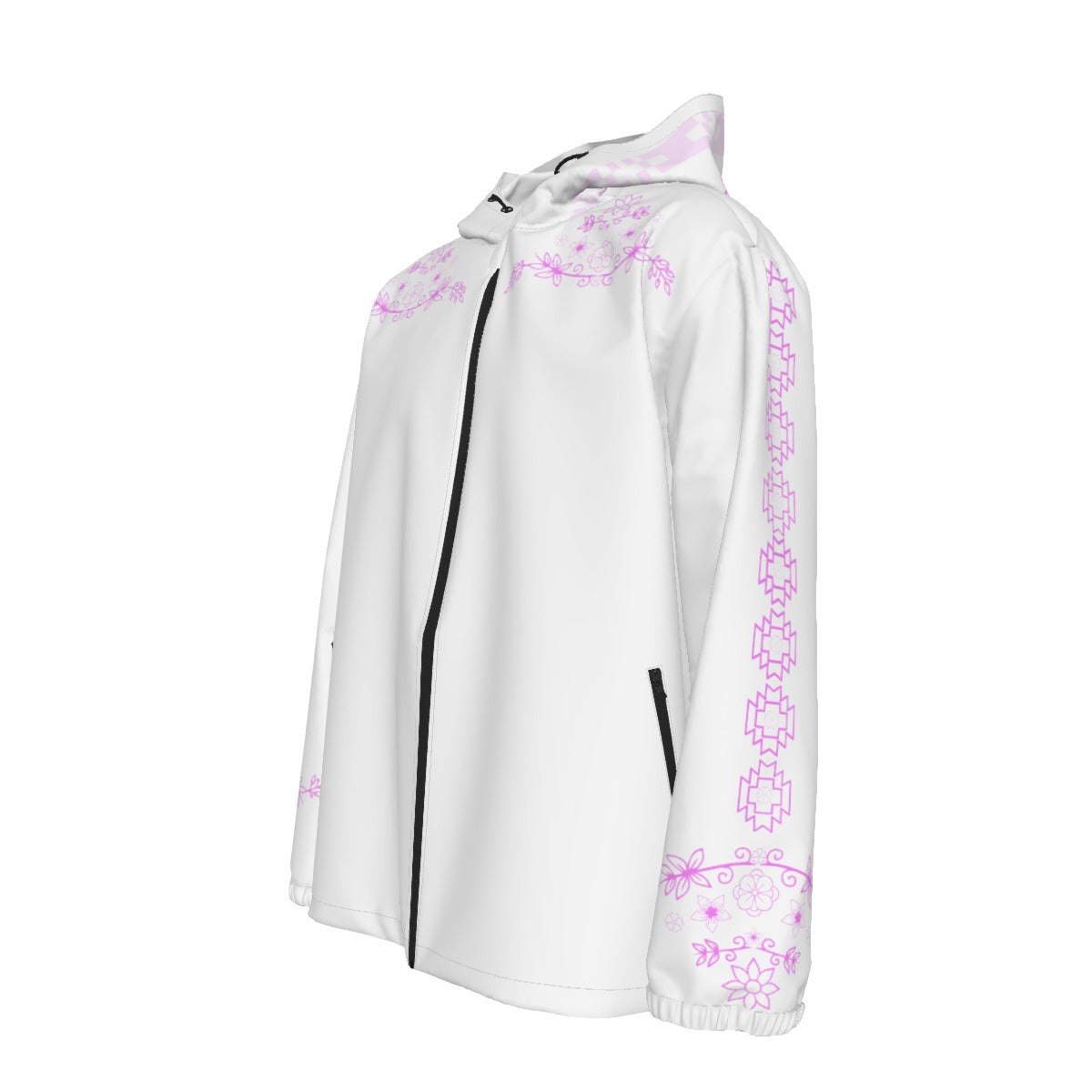 Native Floral Indigenous Hooded Zipper Windproof Jacket
