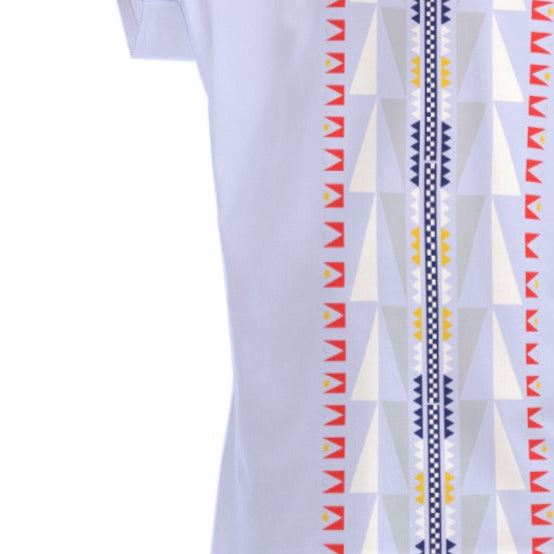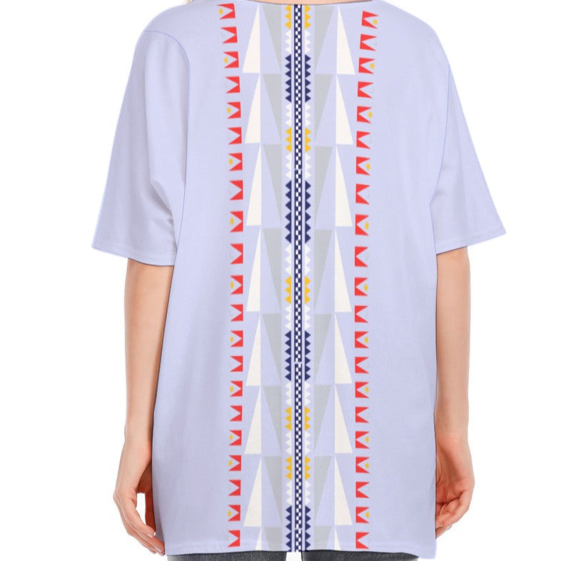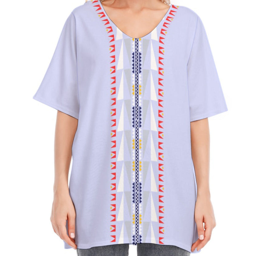 This blouse features batwing sleeves designed for comfortable wear throughout the day. Crafted from durable cotton, it includes an extended back hem for added coverage.