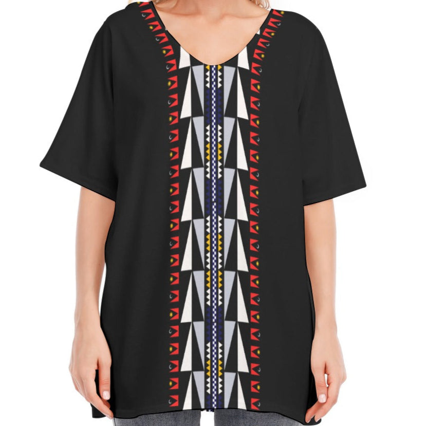 This blouse features batwing sleeves designed for comfortable wear throughout the day. Crafted from durable cotton, it includes an extended back hem for added coverage.