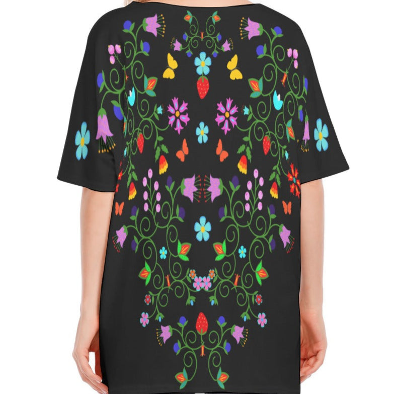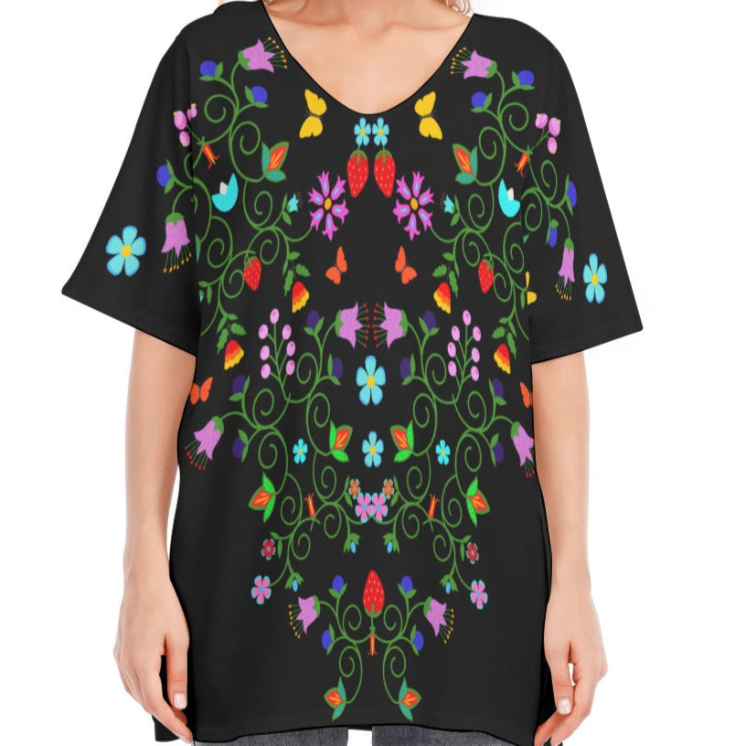 - Bat sleeves, V-neck style