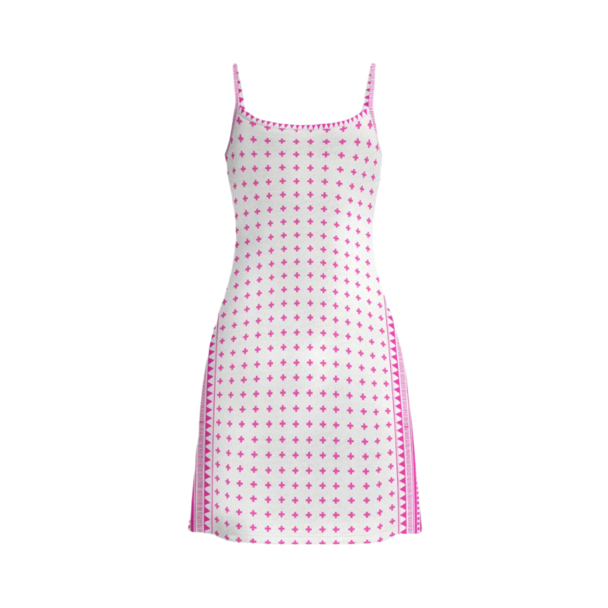 This mesh dress features a double-layer and spaghetti-strap design for a cheeky fun and stylish look.