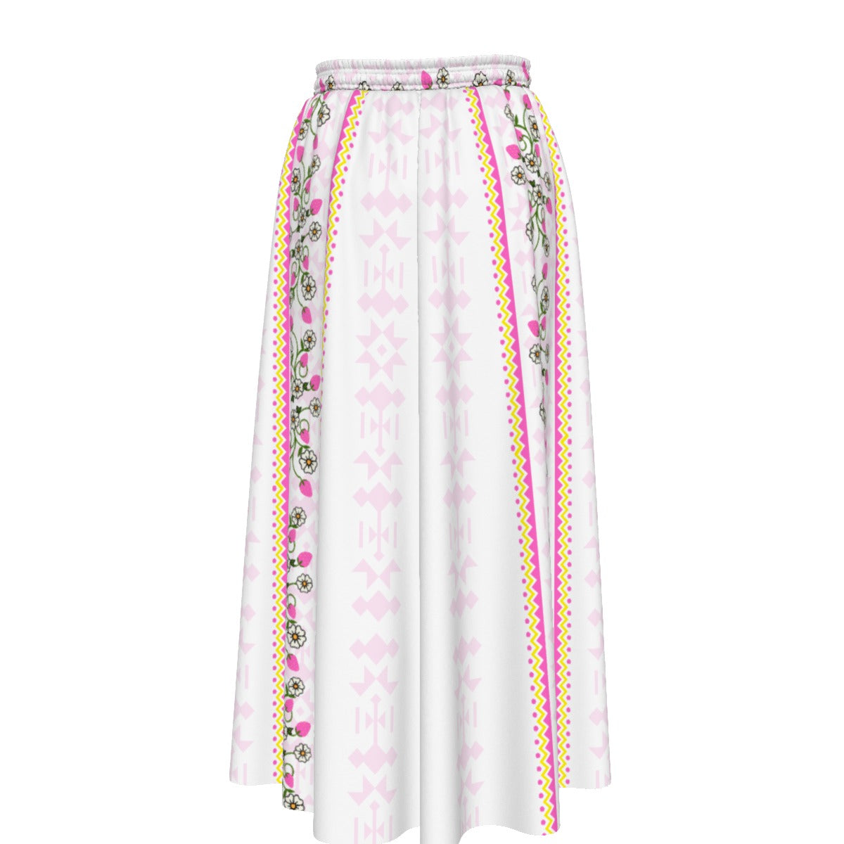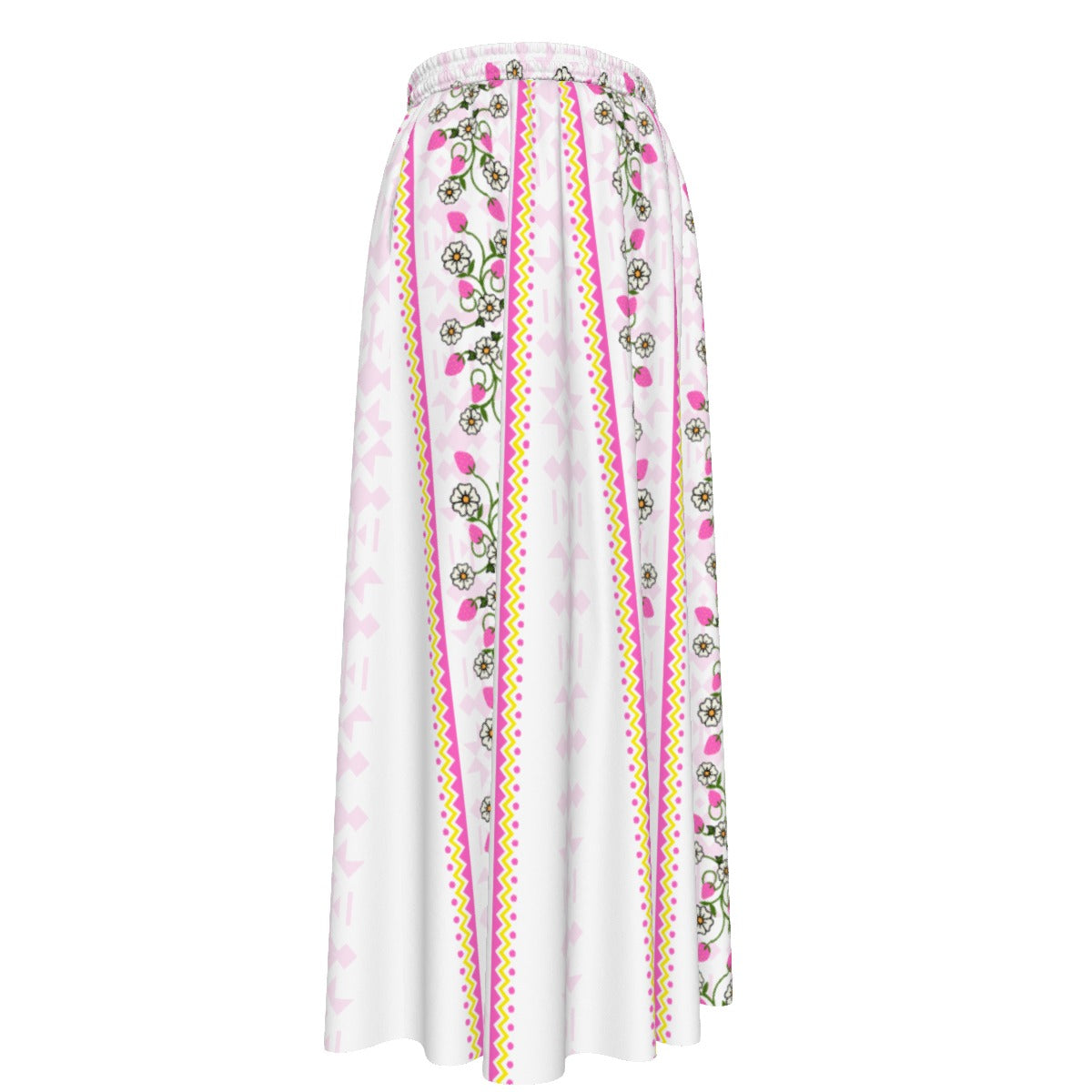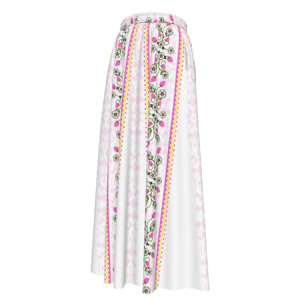 Pink Strawberry Heart Berry Maxi Chiffon Skirt