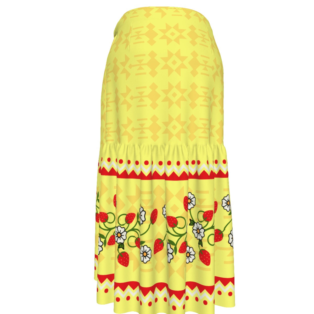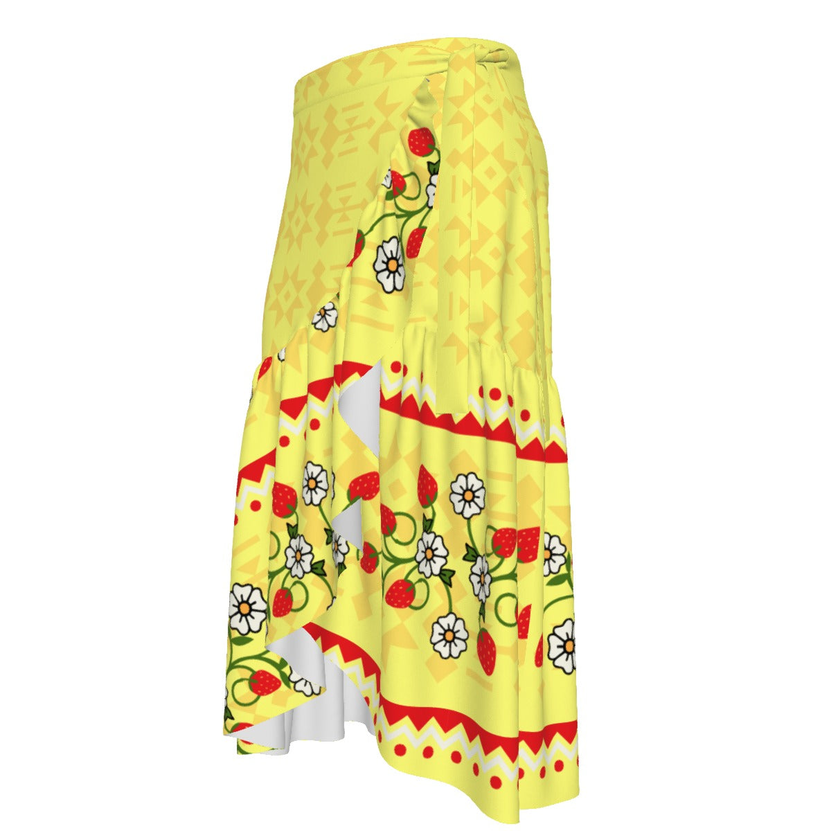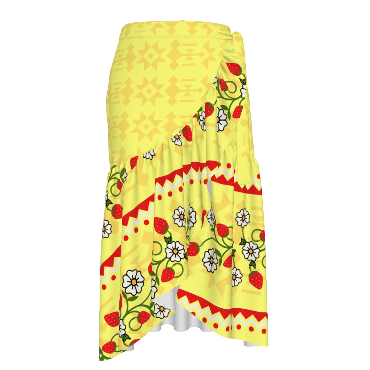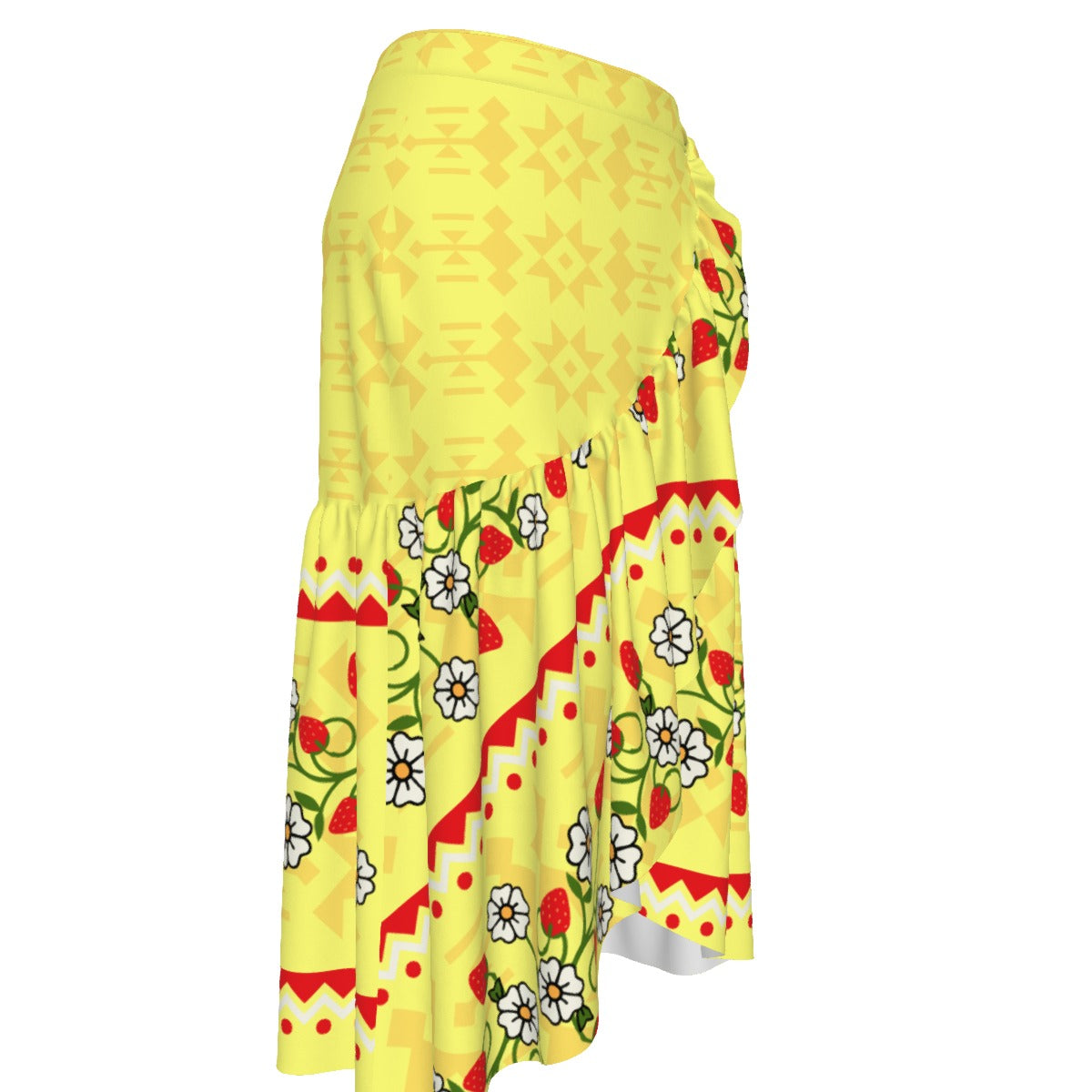 This wrap skirt features a lightweight, breathable fabric and a distinctive feminine ruffled design