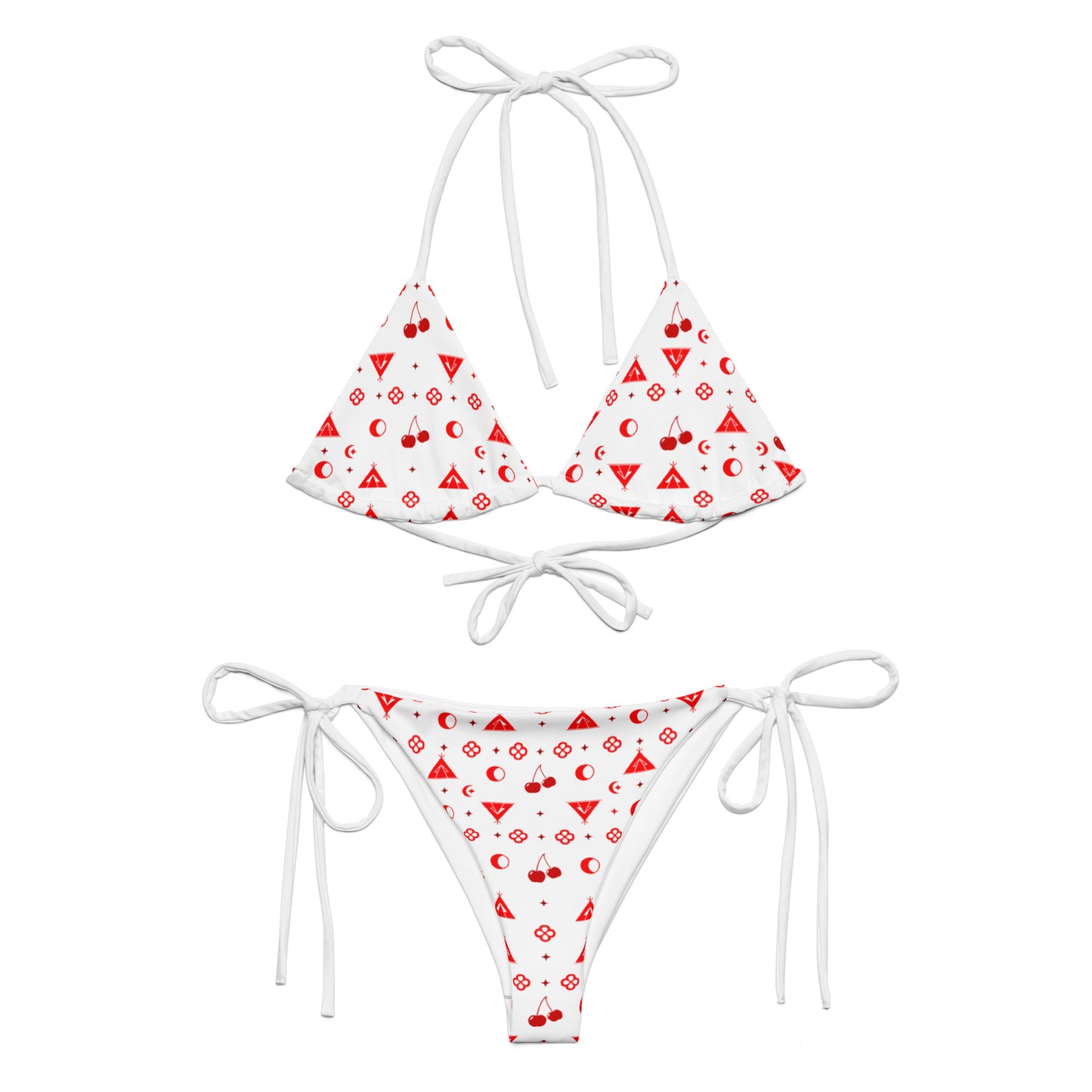 • To make your All-Over Print Recycled String Bikini last longer, thoroughly rinse it off after each use and get rid of any chlorine/salt residue.