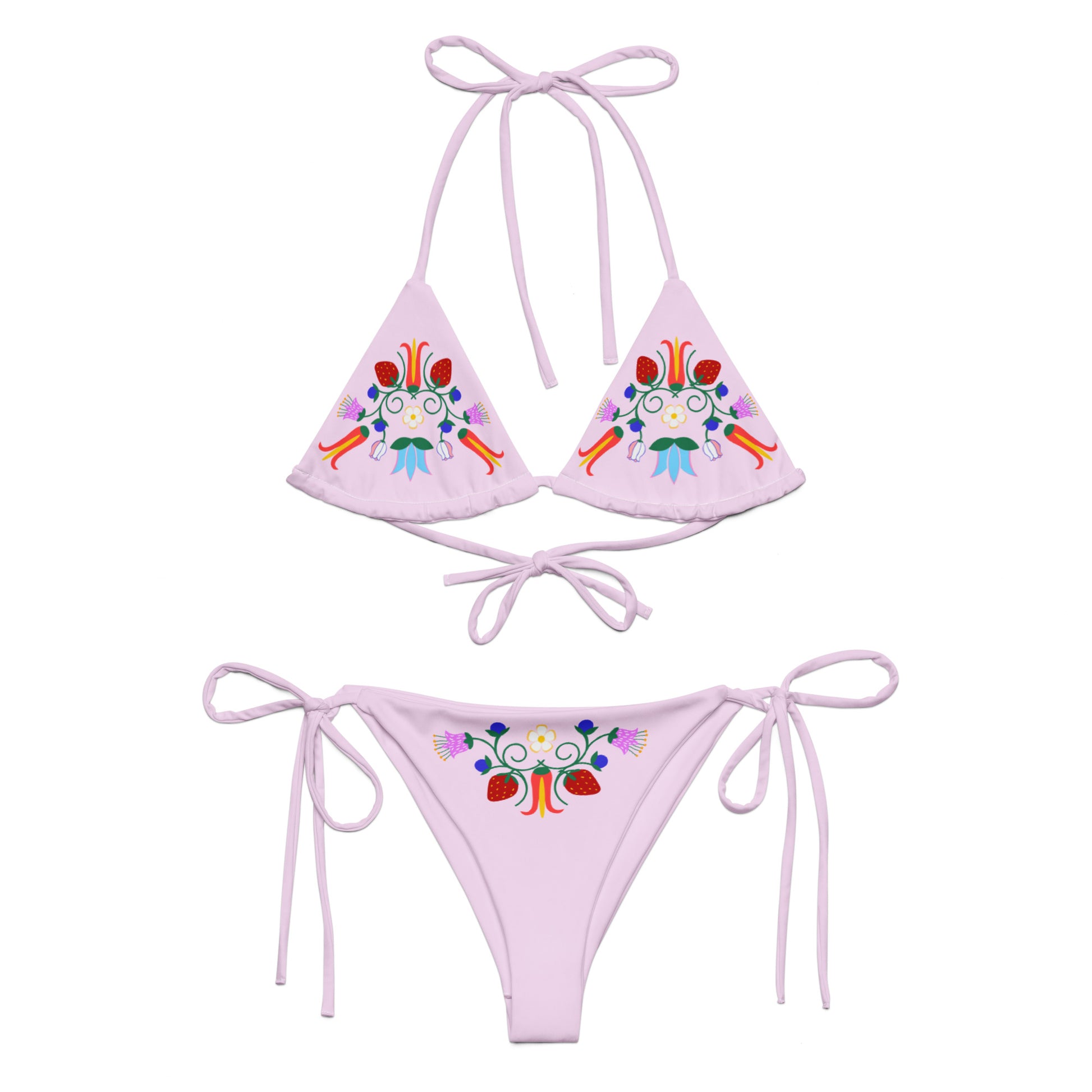 • To make your All-Over Print Recycled String Bikini last longer, thoroughly rinse it off after each use and get rid of any chlorine/salt residue.