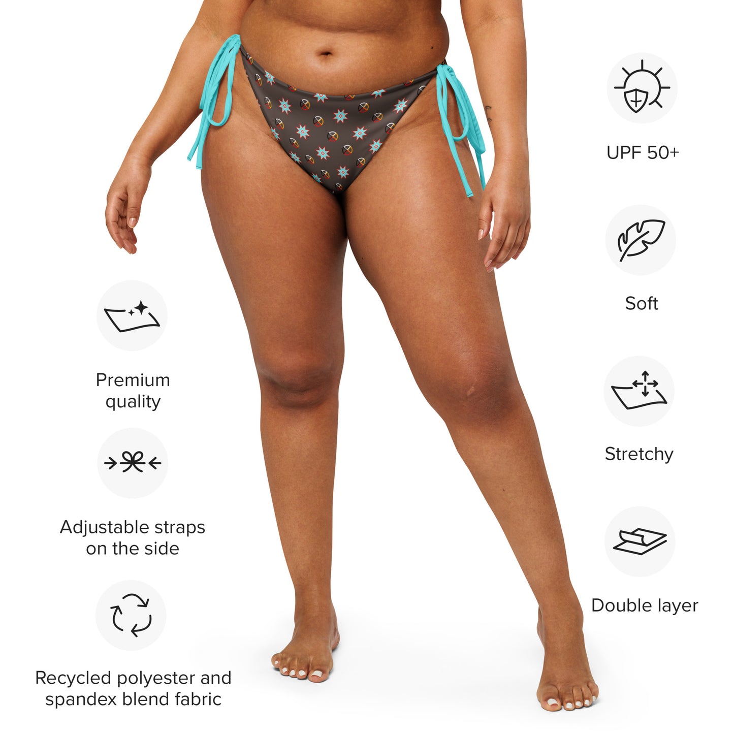 Did someone say sunbathing time? This summer, sit back and relax by the poolside wearing this versatile All-Over Print Recycled String Bikini Bottom. Enjoy the soft, stretchy recycled polyester piece with UPF 50+ and straps you can tighten for a better fit!