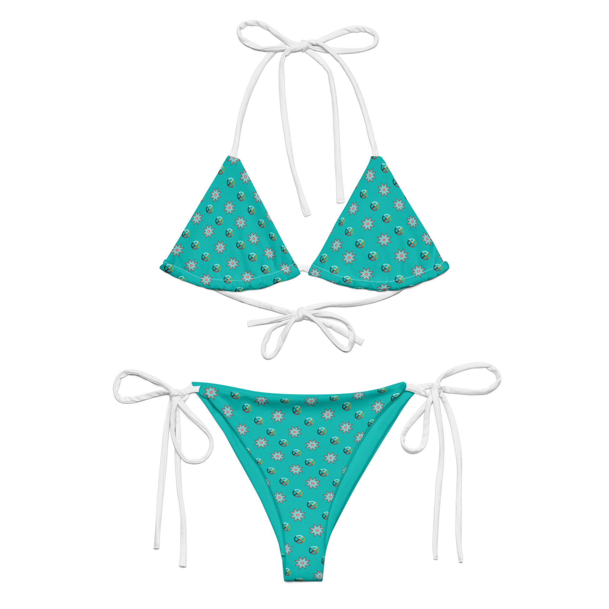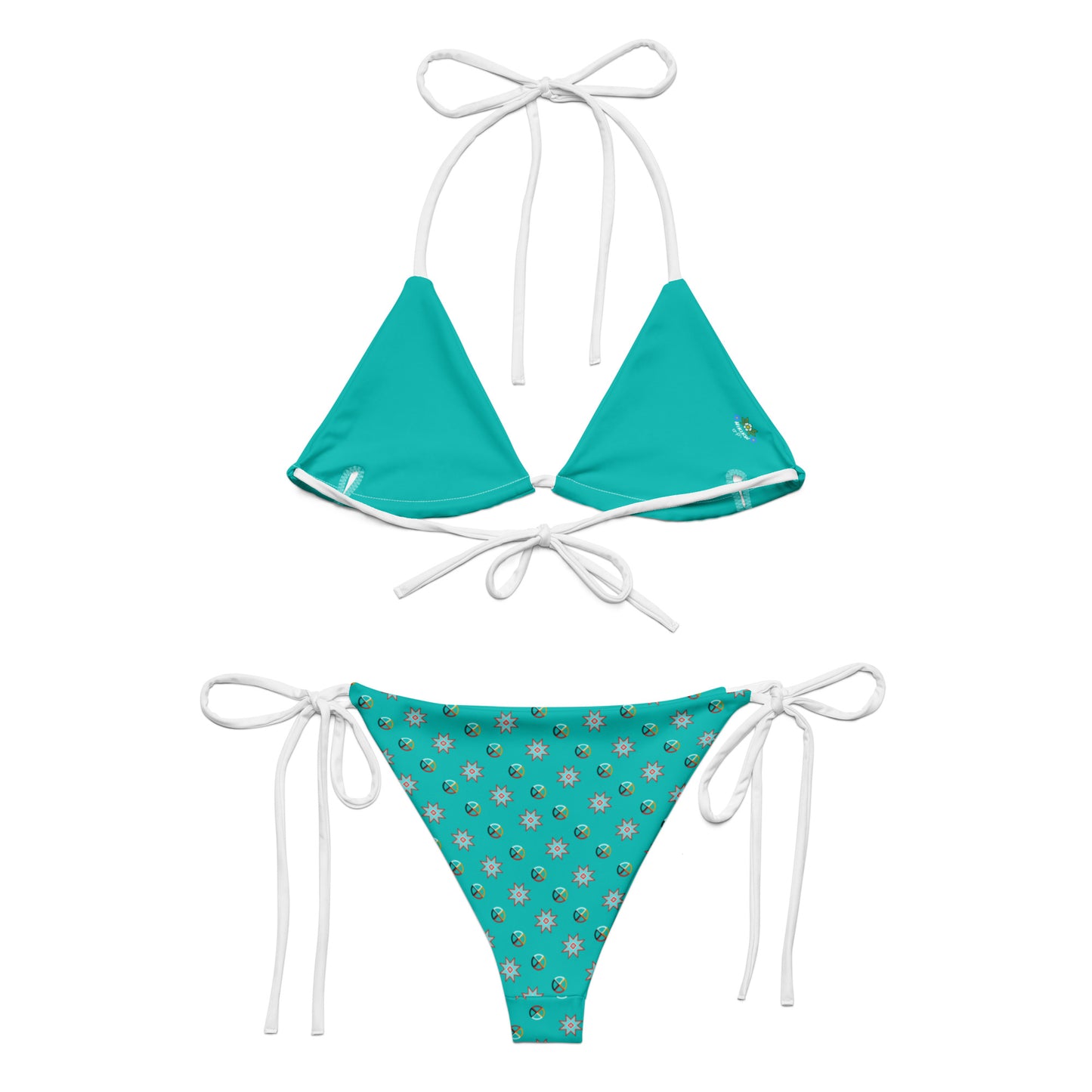 • To make your All-Over Print Recycled String Bikini last longer, thoroughly rinse it off after each use and get rid of any chlorine/salt residue.