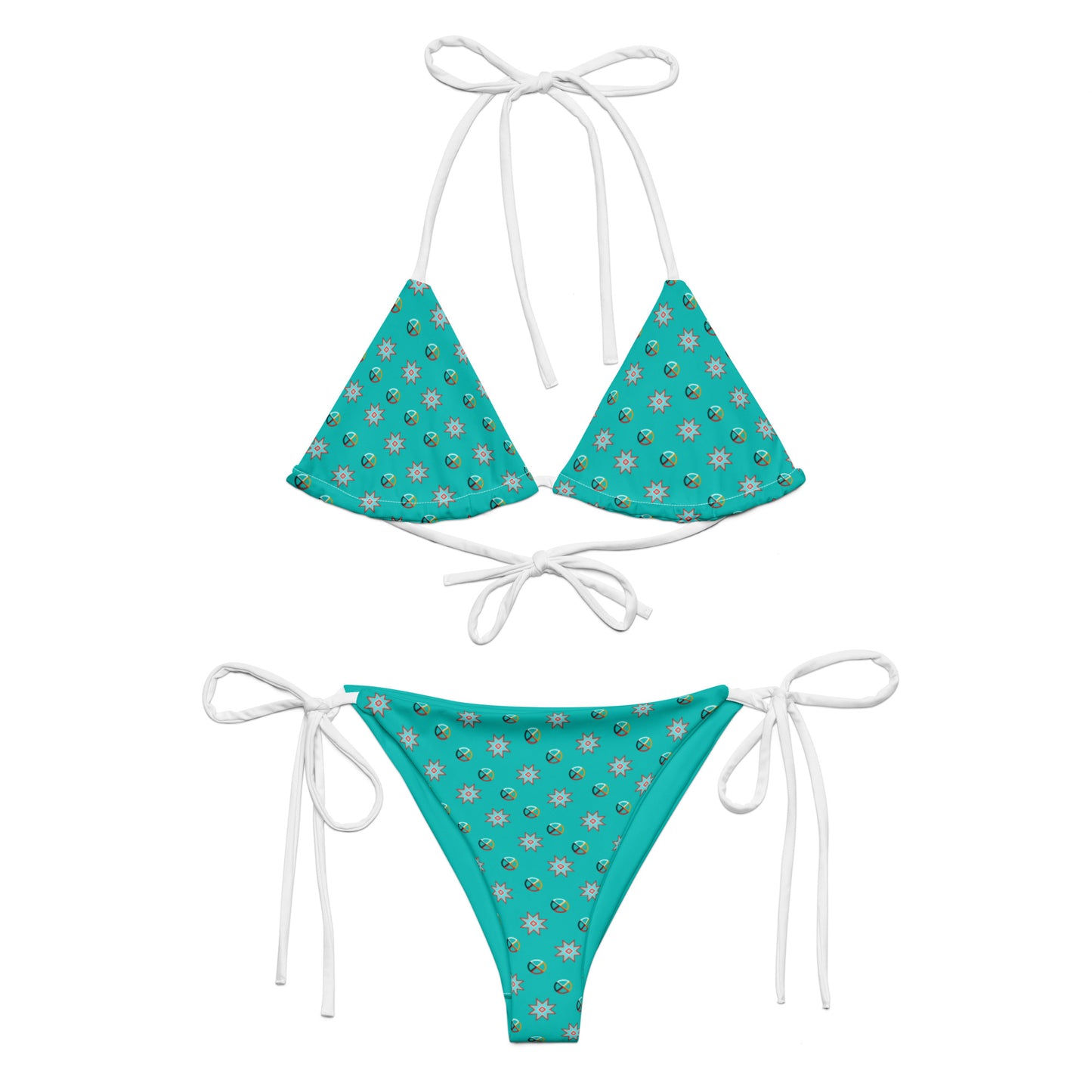 Stay comfortable and stylish all summer with this All-Over Print Recycled String Bikini set. It’s made from soft recycled polyester with double-layering and UPF 50+. Style the straps how you like, and get ready to swim!