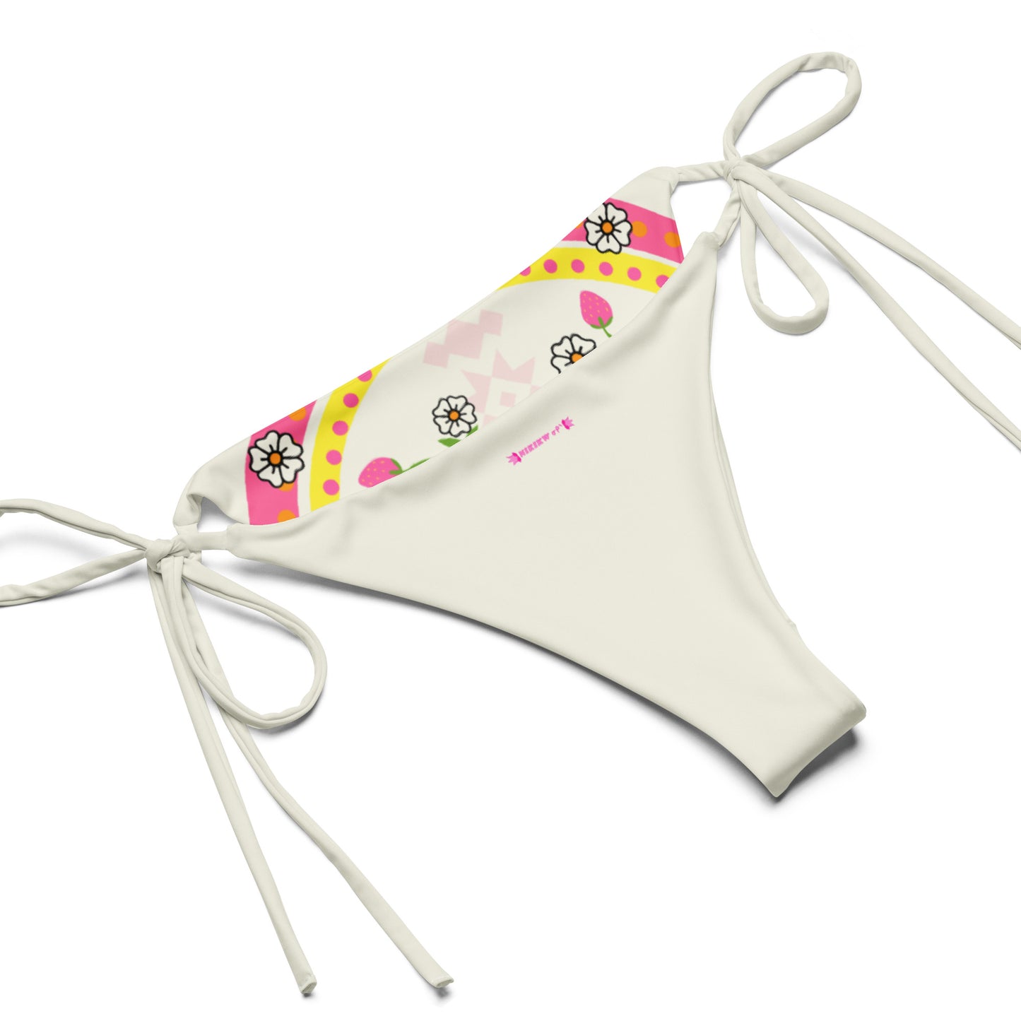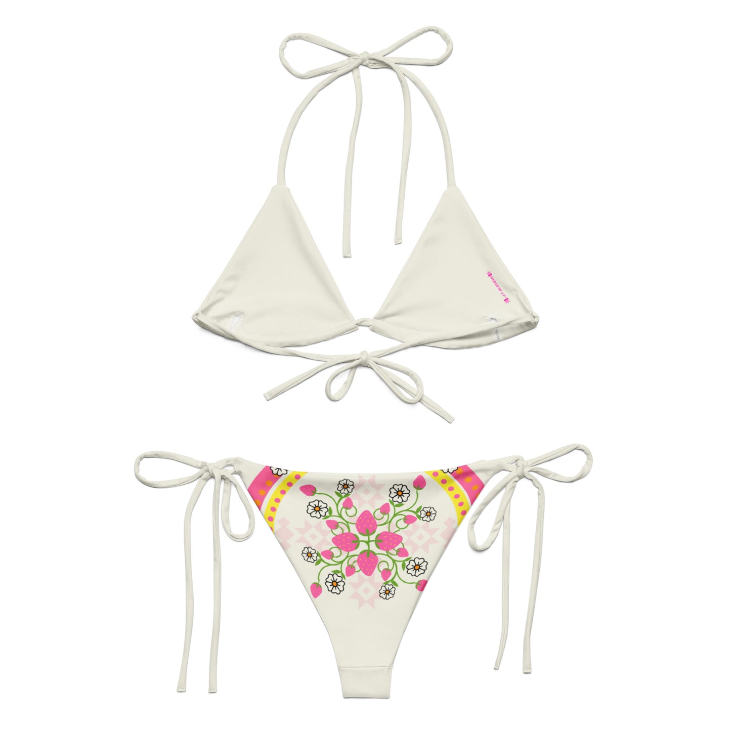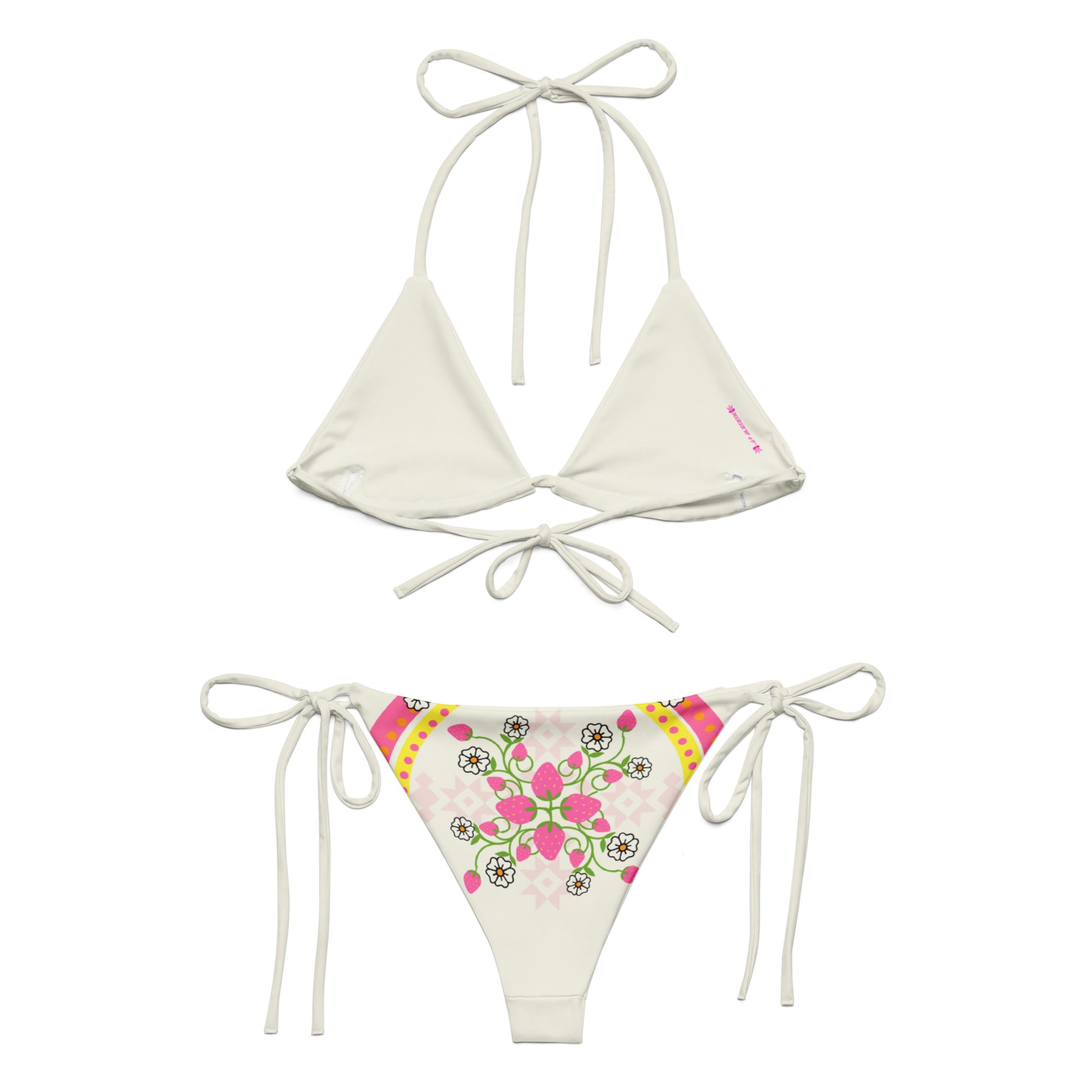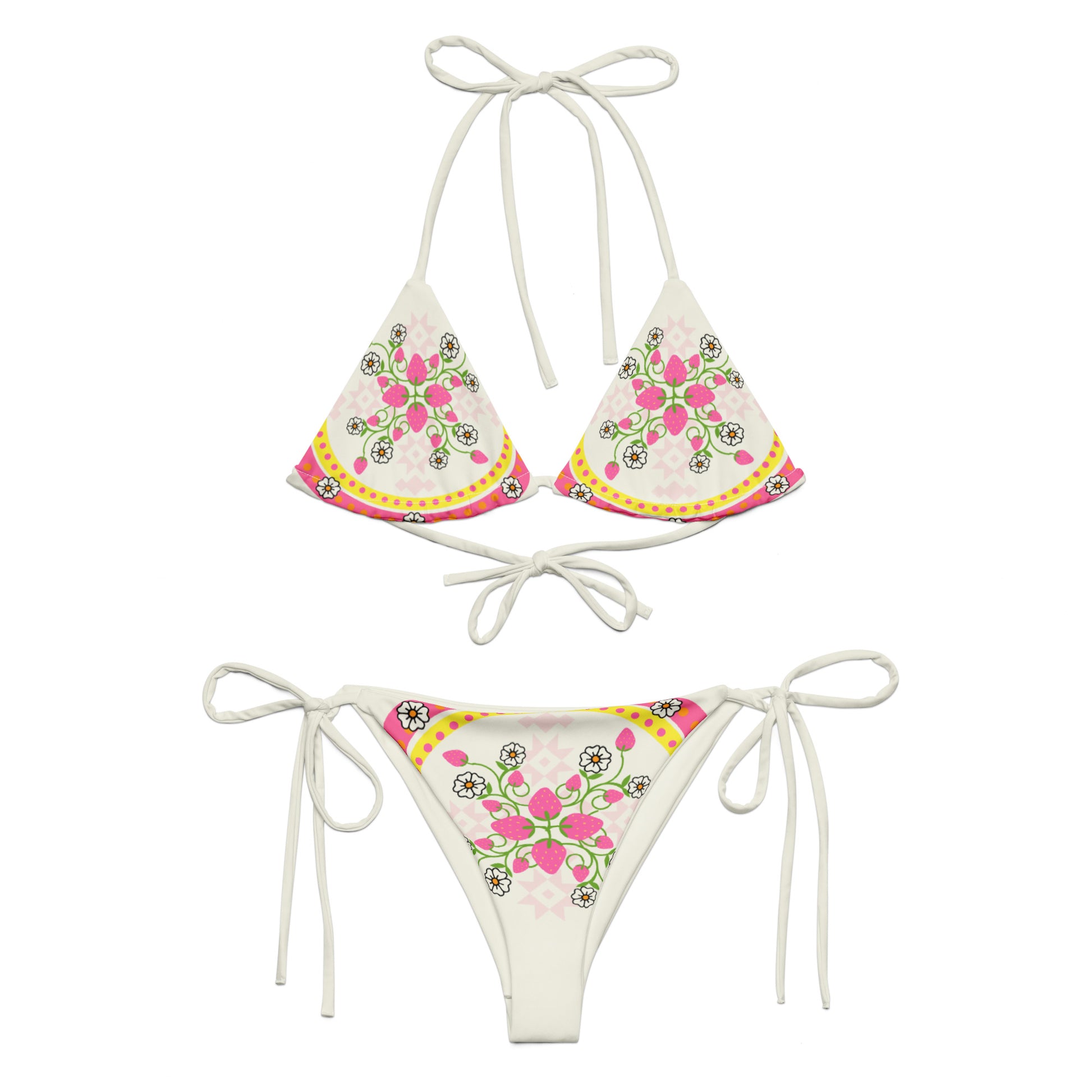• To make your All-Over Print Recycled String Bikini last longer, thoroughly rinse it off after each use and get rid of any chlorine/salt residue.